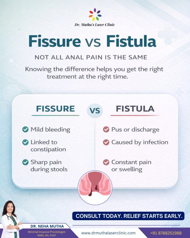Anal pain is a common but often misunderstood problem. Many people assume all anal pain is the same, but conditions like anal fissure and anal fistula are very different and require different treatments. Knowing the difference helps you seek the right care at the right time and avoid complications. This guide explains the difference between…